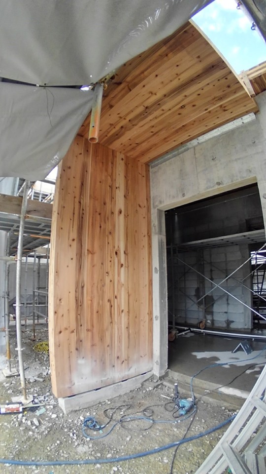 琉球大学ZEH実験棟の工事進捗です。 屋根下地にCLT(クロスラミネートティンバー)を採用しました。